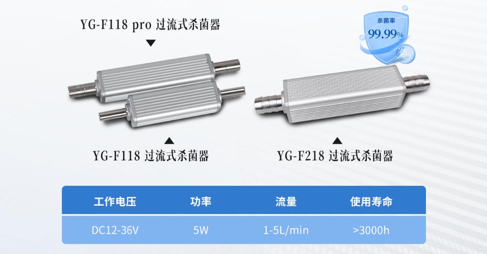 青島螢光也陸續(xù)推出了多款水殺菌相關(guān)產(chǎn)品,比如:YG-F118、YG-F218。可以滿(mǎn)足水箱和流動(dòng)水殺菌需求,產(chǎn)品已經(jīng)通過(guò)殺菌測(cè)試,并成功安裝。產(chǎn)品研制成功后,經(jīng)第三方殺菌檢測(cè)在流速2L/min下,殺菌率可以高達(dá)99.99%,因此備受市場(chǎng)青睞。